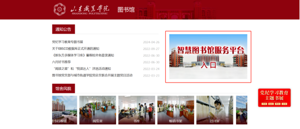 通过学校官网——机构设置——图书馆——智慧图书馆服务平台入口点击进入或者直接访问https://sdzyxy.mh.chaoxing.com/。