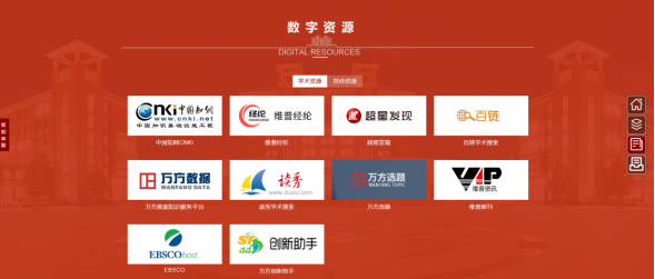 3.点击电子资源,可以在校园网内浏览图书馆的各种电子资源。