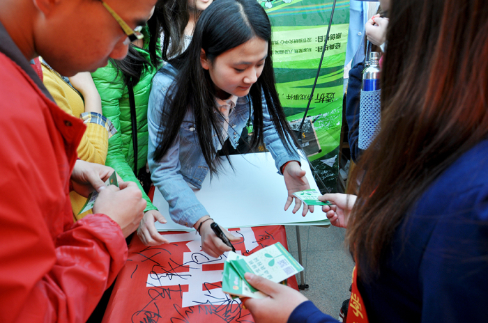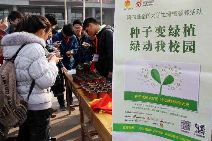 “播种希望,绿动校园”活动由球友会(中国)学生会承办,该活动得到了中国绿化基金会的大力支持。3月7日至11日期间,活动志愿者在学生公寓、餐厅等场所免费向在校学生派发各类绿植种子,广大同学积极认领,并通过新浪微博与各兄弟高校学生进行了领养心得互动,倡导低碳环保的生活从一颗传播爱与生命的种子开始。院学生会新媒体实践部还通过网络投票等方式提名产生绿色大使的候选人,并发动全校学生参与绿色大使的评选,同时在新浪微博上传活动进展情况,借助互联网传递绿色正能量。