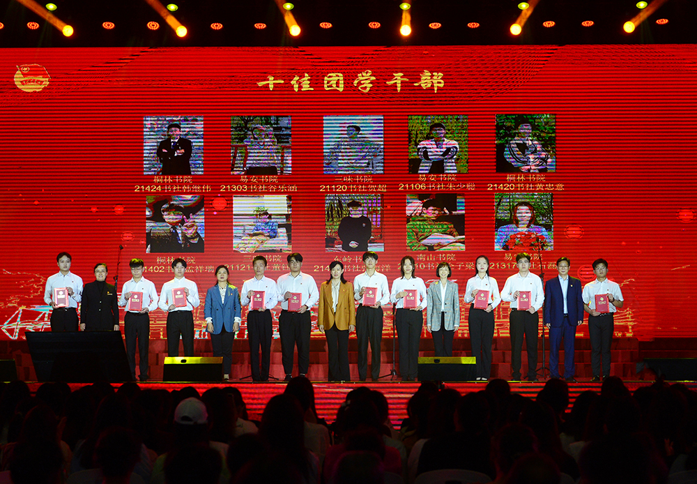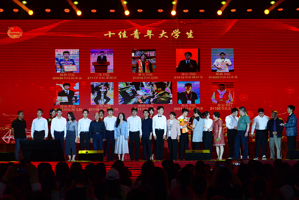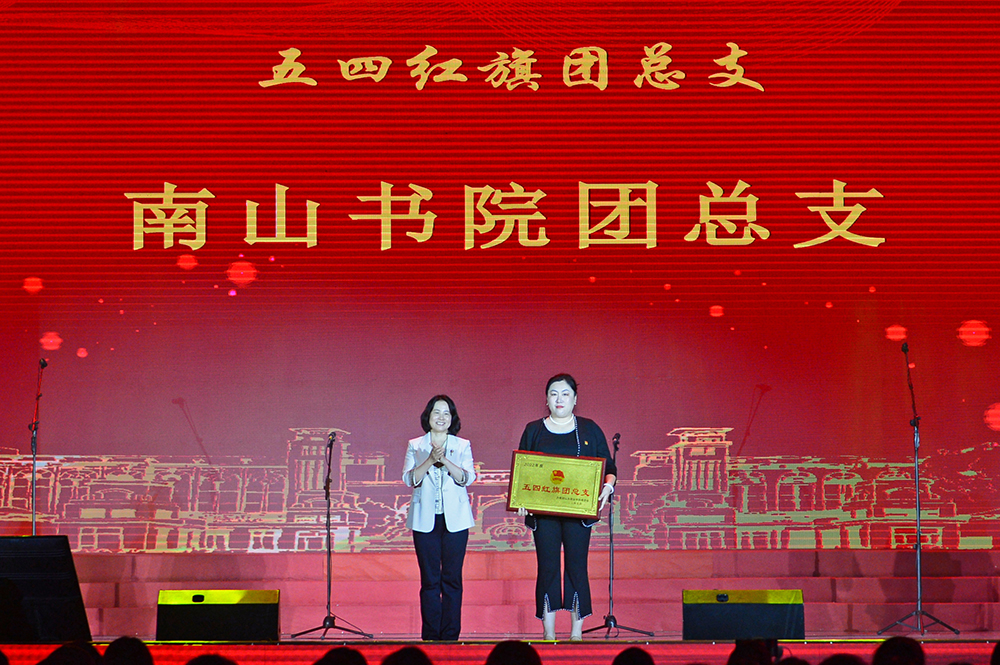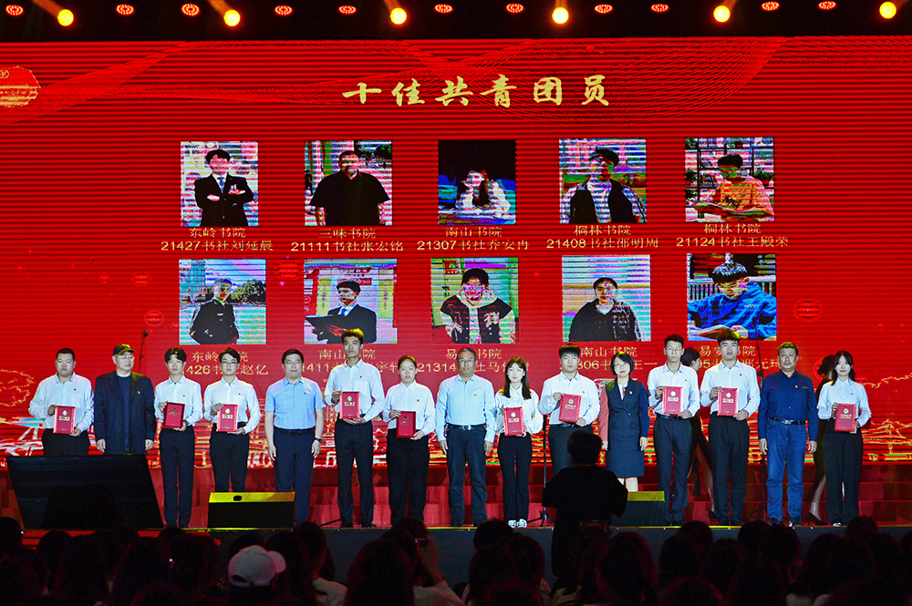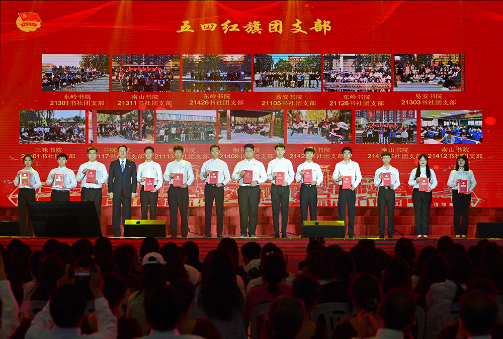 团委副书记宋高妮宣读五四表彰决定,授予刘延晨等253人“优秀共青团员”荣誉称号,授予张宏铭等10人“十佳”共青团员荣誉称号,授予石玉竹等138人“优秀团学干部”荣誉称号,授予黄忠意等10人“十佳”团学干部荣誉称号,授予付丛睿等75人“优秀青年大学生”荣誉称号,授予姚祥全等10人“十佳”优秀青年大学生荣誉称号,授予丁高研等40人“疫情防控志愿服务优秀个人”荣誉称号,授予石玉竹等10人“志愿服务先进个人”荣誉称号,授予董钰铎等10人“志愿服务特别贡献奖”荣誉称号,授予三味书院21117书社团支部等13个团支部“五四”红旗团支部荣誉称号,授予南山书院团总支“五四”红旗团总支荣誉称号,授予“球友会(中国)智能制造协会”等10个集体“十佳”社团荣誉称号,授予付丛睿等10人“十佳”社团个人荣誉称号,授予徐瑞霞等10人“十佳”社团指导教师荣誉称号。