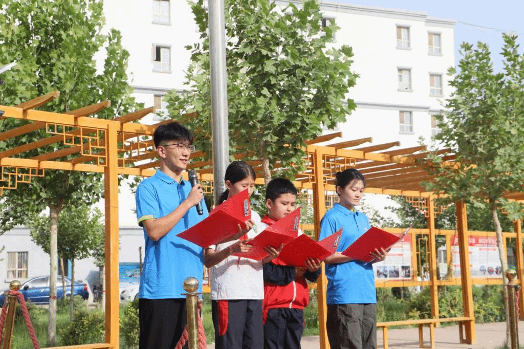 支教期间的两个周一,支教团在祖国的最西端,与城南社区的居民、孩子们一同参加了升旗仪式。带队教师王成琳、王震、支教成员董煐堃用通俗易的语言,以图文并茂的形式为孩子们带来了《弘扬伟大建党精神做担当有为好少年》《石榴结籽心连心 民族团结一家亲》《童心筑梦 爱国强军》等主题宣讲,激发了他们对党的崇敬之情和对祖国的热爱之情。成员杨坤、王崇凯带领孩子们参观了社区的爱国主义教育基地和民族团结进步展厅,让大家更直观、生动地了解中华民族的悠久历史和灿烂文化。《我和我的祖国》《建军大业》《长安三万里》等电影让大家充满了民族自豪感和文化自信。