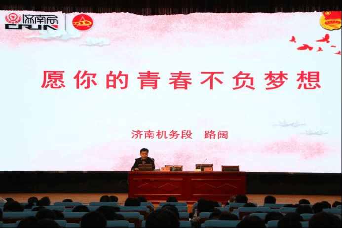 学生工作处王宁主持本次会议,济南局集团优秀青年毕业生汤川川、尹志海、路阔、李魏林依次发表讲话。