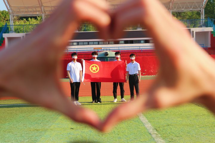 同学们在校园内不同地点拍下与团旗、团徽的创意合照,记录美好瞬间。他们脸上热情而坚毅的模样,展示出了青年朝气蓬勃和昂扬向上的精神风貌。