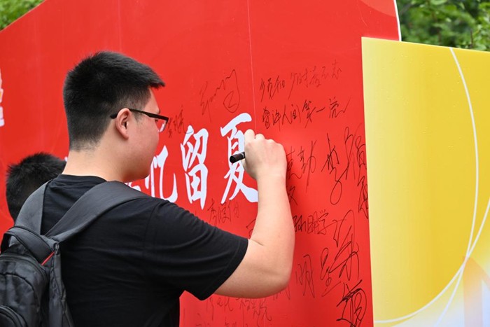 在座谈会中,辅导员们向同学们送上毕业祝福,希望大家以饱满的热情和积极的心态开启青春奋斗的新征程。毕业生代表深情回顾了在桐林书院度过的美好时光,分享交流了在校期间的成长与收获,言语间充满了对书院、恩师的感激、不舍与祝福。桐林书院不仅设置了党员先锋岗,有序地为毕业生颁发证书,保障毕业生顺利毕业,还设置了拍照打卡地。同时,志愿者与毕业生在三角广场共同演唱歌曲来表达对毕业的祝贺和对书院的不舍。随后,毕业学子们纷纷在签字板上签字,留作纪念,为自己的大学生涯画上完美的句号。