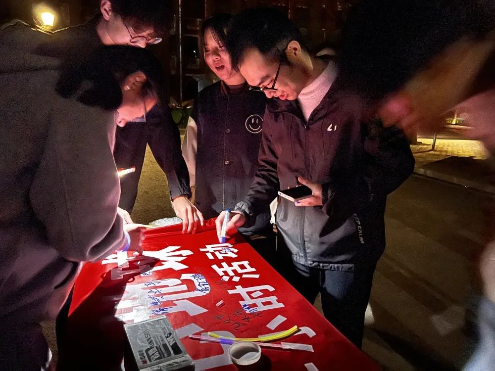 3月25日晚19:00,伴随着哨声的响起,宿舍楼相继熄灯,近两千名同学纷纷下楼,积极踊跃地在“荧荧之光,跳动青春活力;闪闪之星,亲近掌心地球”横幅上签下自己的名宇,表达了对本活动的支持以及节能减排的決心。
