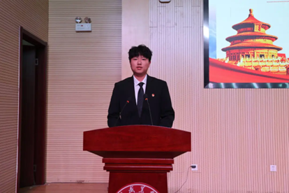 学员代表沈胜钰代表全体青马班学员做出承诺,表示会秉持初心、坚定信念,勤奋学习、勇于探索,学以致用、担当作为。秉承知能共进,德道同优的校训,以昂扬的斗志、扎实的行动,在青马班中锤炼自己,向着成为合格的青年马克思主义者的目标奋勇前行,为党和国家的事业贡献自己的青春力量。