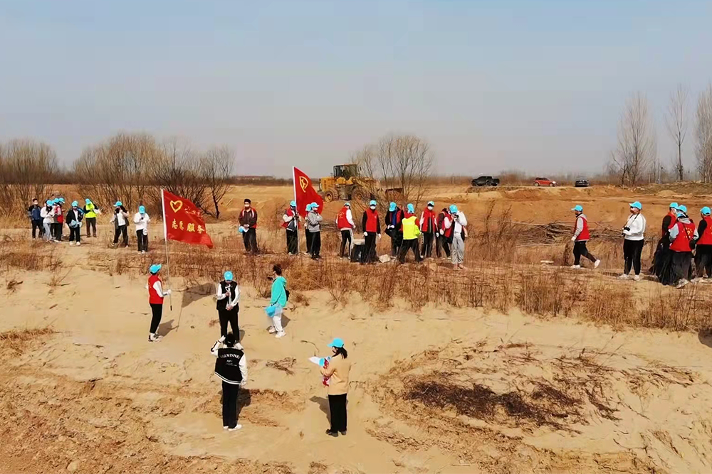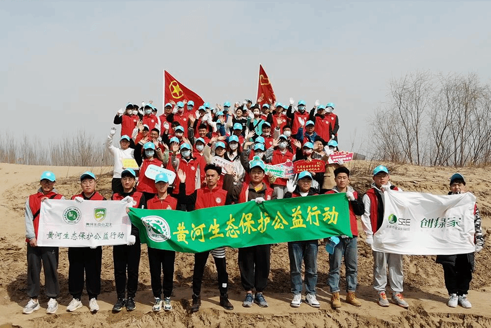 在黄河生态文明环境教育示范基地,一行人开展了净滩、植树活动。通过捡拾黄河岸边各类垃圾,种下一颗颗绿树,为打造青山常在、绿水长流、空气常新的美丽中国贡献自己的一份力量。