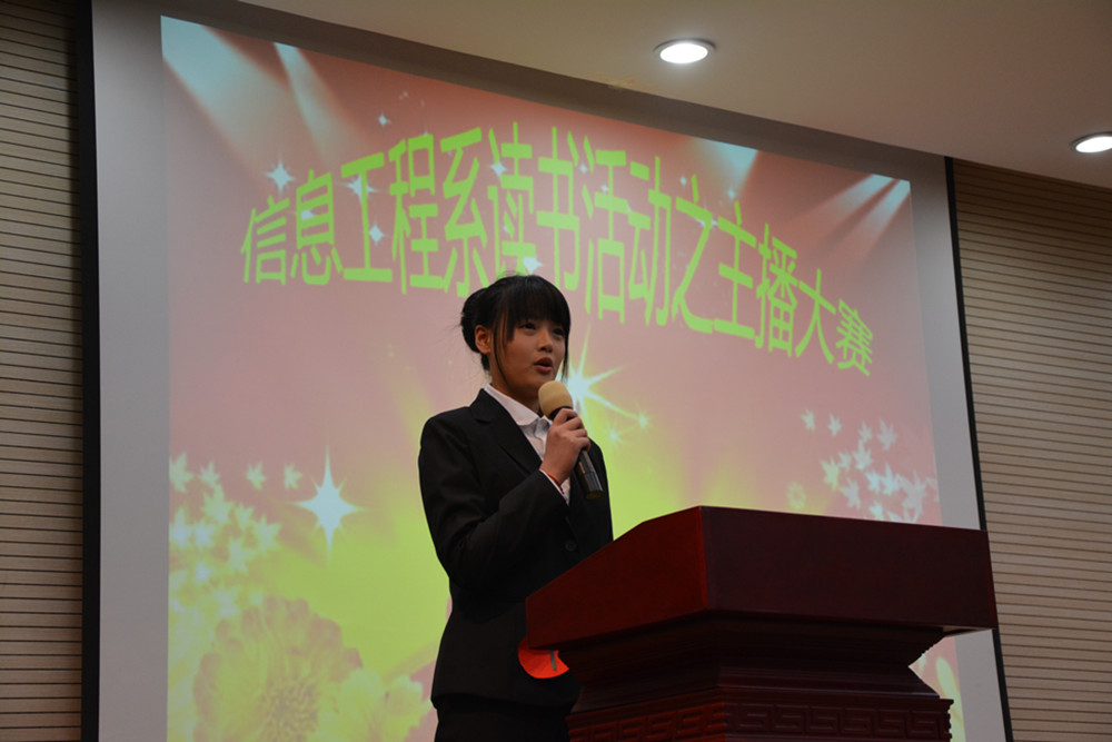6月1日下午,信息工程系在报告厅举办“好书共知共享”主播大赛。系学工办主任钮晓悦和辅导员老师、学生会干事出席活动并担任评委。本次大赛分为“自我介绍”、“智慧问答”、“节目展示”三个环节。比赛中,11位参赛选手以流畅的语言,洪亮的声音,真挚的情感博得了在座观众和评委的阵阵掌声。本次大赛,调动了同学们的读书积极性,丰富了知识,开阔了视野,休会到与经典、好书交朋友学有所乐。