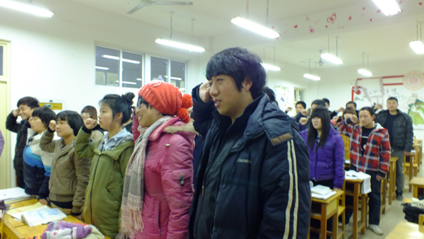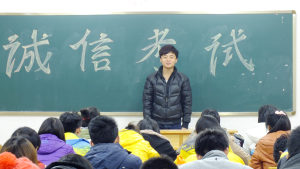 “我宣誓,我愿意接受老师和同学们的监督,用我的人格保证,一定做一个诚实守信的考生,遵守考试规则,决不作弊!以自己的实际行动实践自己的诺言,在考试中考出水平,考出品德,为自己争光,为班级争光。”震耳欲聋的声音从机电装备系各个班级中传来。