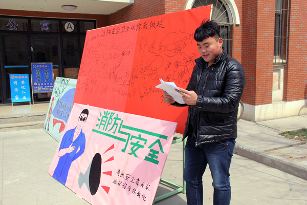 为切实增强同学们的消防安全意识,提高学生公寓消防安全管理,3月26日,机电装备系举办主题为“增强自我保护观念,提高宿舍安全意识”的消防安全宣传活动。 活动现场的消防逃生、安全宣传展板以图文结合的方式向同学们展示了宿舍发生火灾的场景。一幕幕触目惊心的画面,让前来观看展板的同学们感慨万千,纷纷走上前来签字表明以后安全用电的决心。机电装备系辅导员刘存正与前来参加活动的同学们交流安全用电知识,他说同学们要加强宿舍安全用电知识学习,提高消防安全意识,加大安全检查力度,做到防患于未然。