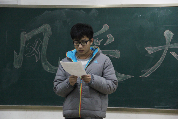 大赛中,率先登场的张艳艳同学朗诵的《My college life》语速适中,节奏鲜明,一段英语绕口令更是给现场观众带来无穷的乐趣;4号选手杜玉玲诵读的《Friend and love》表达出对友情和爱情的珍惜和维护;8号选手丁宁宁的原创文章《Each day Is a gift》希望同学们都可以珍惜过好每一天,每一天都是一份礼物;12号选手陈力玮则用歌曲的方式参加比赛,他演唱的《Dead end》给人极大的震撼,正是凭借这首歌曲,他成功斩获本次大赛的冠军。