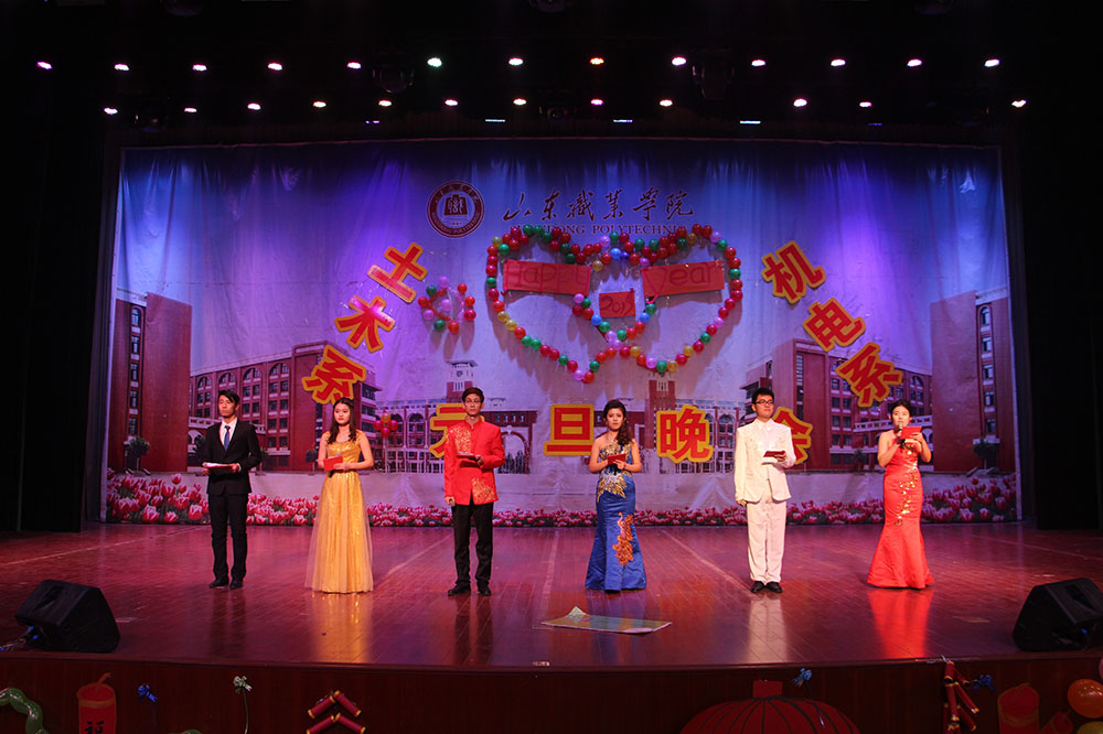 本次晚会以“激情元旦、放飞梦想”为主题,节目精彩纷呈。晚会以一曲动魄人心的《威风锣鼓》拉开了帷幕。舞蹈《丰收的葡萄园》以曼妙优雅、婉约优美的舞姿吸引了在场观众的眼球;一首《乌苏里船歌》唱出了赫哲族人欢快,甜美的幸福生活,赢得了全场的阵阵掌声;《街舞表演》激扬着青春的风采,让人仿佛走进了时代的动感地带,世界在观众的眼前舒展开来;极具创意的小品《一念天堂》以风趣幽默的动作、诙谐调侃的语言令在场观众捧腹,将全场火爆的气氛瞬间点燃。而之后的歌朗诵《青春赞歌》、礼仪《礼暖冬夜》更是将现场气氛推上了高潮,叫好声和掌声不绝于耳。表演期间的观众互动环节萝卜蹲、抢凳子等趣味小比赛令场上欢声一片。最后,晚会在两系学生干部一首合唱声中圆满落幕。