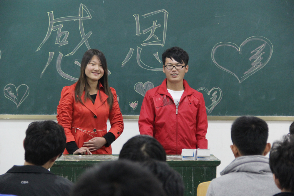 “感恩的心,感谢有你,伴我一生,让我有勇气作我自己……”一曲《感恩的心》从汽车1321班的班会现场中响起。11月7日晚,机电装备系组织各班开展了“感恩”主题班会。