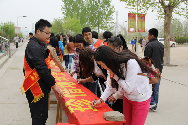 为了增强同学们的环保意识,4月22日,值世界地球日到来之际,机电装备系举办主题为“只有一个地球”签名活动。 活动中,志愿者们向路过的同学分发宣传单,向他们介绍世界地球日的发展历史与作用意义,并引导同学们在印有“珍惜地球资源,促进生态文明”的条幅上签下自己的名字。在世界地球日到来之时,青年志愿者们用行动来呼吁大家“保护环境,美化地球”。 通过本次宣传活动,同学们对“只有一个地球”的世界地球日口号有了更为深刻的认识,充分意识到了“保护环境,热爱家园”的重要性,同时也树立了同学们改善和保护环境的意识。