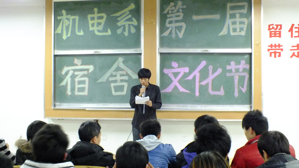 宿舍是我家,我爱我们的家。11月29日晚,机电装备系举办大型宿舍文化节晚会,机电装备系辅导员刘存正与2012级的新同学们一起参加了晚会。