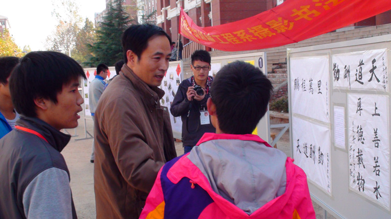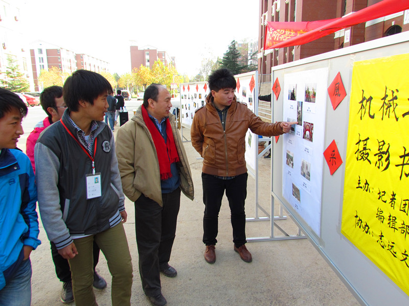 本次摄影书画展共分为“教师风采、魅力机械、最美山职、大好河山、笔劲苍遒、画龙点睛”六个板块。其中,“教师风采”主要是展览了机械工程系老师拍摄的摄影作品,“魅力机械”板块主要展出了德国留学生与机械工程系师生进行技术交流、2012级新生参加军训等众多精彩的活动摄影。在作品展览的过程中,大量的老师和同学纷纷驻足,现场工作人员对每幅作品进行了简单而富有艺术气息的介绍,使得参观者对本次活动入选的优秀作品了解更全面、印象更深刻。
