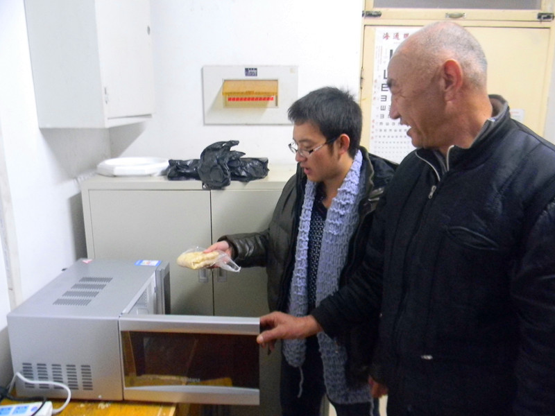 在微波炉送到宿舍楼当天,为随时可以帮助同学们热饭做好准备,楼管员进行了微波炉使用方法的学习。下了晚自习后,同学们得知宿舍楼有了一台微波炉后,便带着自己的饭到楼管员那里进行加热,楼管员热情接待了前来加热夜宵的同学,并告知在场同学微波炉的使用方法,使同学们对微波炉的使用有了初步的了解。