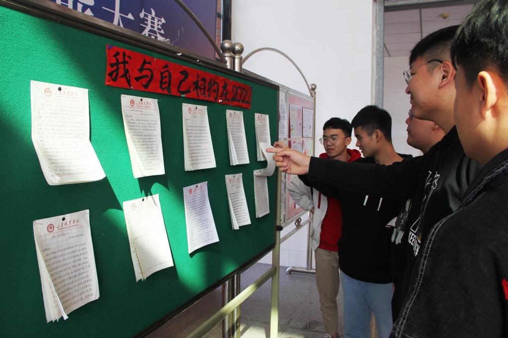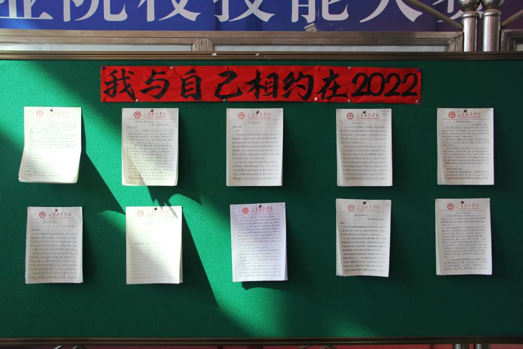 活动结束后,选出10篇有代表性的作品,制成展板,摆放在九号楼一楼大厅,供同学们参观学习,并为同学们精心准备了信封,将他们的信密封保存三年,三年后在交到他们手中,希望同学们三年后看到这封信时,能够回忆起自己大学三年的点点滴滴,不忘初心与梦想。