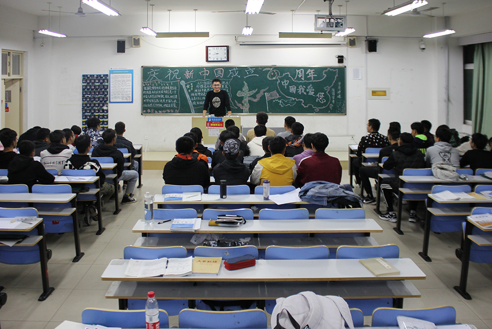 顺应时代号召,全面贯彻习近平总书记在庆祝中华人民共和国成立七十周年上的讲话为背景,召开此次班会。