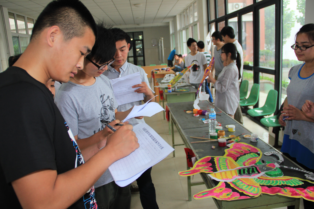 从制作到手绘,选手们事无巨细、亲力亲为。经过努力,展现出一个个活灵活现的风筝——机车车辆1233班以简易的笔法、生动的神态勾勒出一条腾飞的华夏巨龙,将我的梦与中国梦相连,表达了对祖国的美好祝愿。通信信号1233班运用紫黄两色的鲜明对比绘出一幅龙凤呈祥,并结合飘逸的书法展现出我国传统文化的精髓。通信信号1231班的小叮当简单大方、童真无限,让人不禁还念儿时时光。