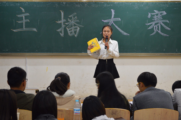 11月9日,管理系举办主播大赛。大赛分为自我介绍、模拟主持两个环节。在自我介绍环节,选手们声情并茂的介绍了自己的家乡,而这种对家乡的情和爱也深深的打动了每一名观众。在模拟主持环节,9名选手以“我最喜爱的一本书”为主题,介绍篇章内容,讲述感悟哲理,使观众获得美的享受和心灵的涤荡。大赛在观众的掌声中圆满落幕。大赛给了选手提供了一个表现自我的舞台,提高了同学们的语言表达和表现能力,展现了当代大学生的青春风采和才华。