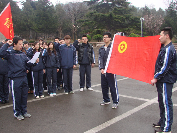 鲜红的管理系系旗和团旗在雨中格外耀眼,身着系服、严肃庄重的同学们在英雄浮雕像前被定格。在我系青年志愿者协会代表扈琦同学的带领下,大家一起在英雄浮雕像前重温、宣读入团誓词:我志愿加入中国共产主义青年团,坚决拥护中国共产党的领导,遵守团的章程,执行团的决议,履行团员义务,严守团的纪律,勤奋学习,积极工作,吃苦在前,享受在后,为共产主义事业而奋斗。随后,我系学工办主任栾金志和同学们一起去瞻仰革命烈士纪念塔和革命烈士纪念碑,缅怀革命先烈,并向各位同学讲述了革命烈士的生平事迹。