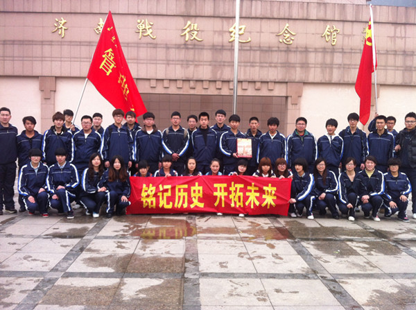 活动最后,同学们于济南战役纪念馆前合影留念并获得济南战役纪念馆工作人员赠送的济南战役纪念册一套。