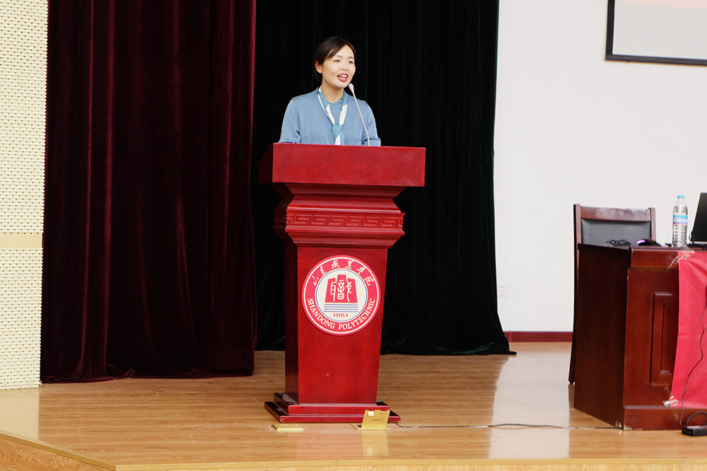 接着,任巍晓进行报告。她感慨怀念了美好幸福的大学生活,并对老师表达了感谢,同时表露出现在作为一名地铁人的初心,为她所在的集团公司感到骄傲和自豪。随后,她为同学们讲解了刚开始实习的困惑、外出他省地铁公司学习的艰苦、自己工作三年的经历。面对就业充满困惑的学弟学妹,她提出了不忘初心、脚踏实地、锤炼品格、勇于奉献四点建议,也对学弟学妹们发出了到济南地铁工作的邀请。