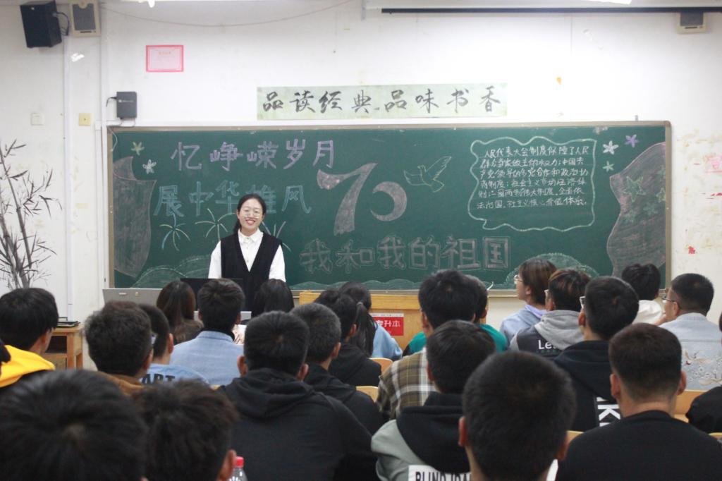 “忆峥嵘岁月,展中华雄风。”为了让同学们回顾中华人民共和国成立七十周年光辉历程,增强同学的爱国精神,铁道运输与财经管理系于10月27日开展“岁月峥嵘,祖国常青”中华人民共和国成立七十周年主题班会。