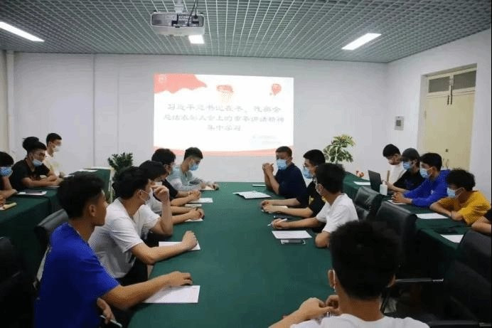 南山书院院长杨荣涛领学,团学干部、入党积极分子代表参加,集中学习、认真领会习近平总书记在大会上的重要讲话精神。