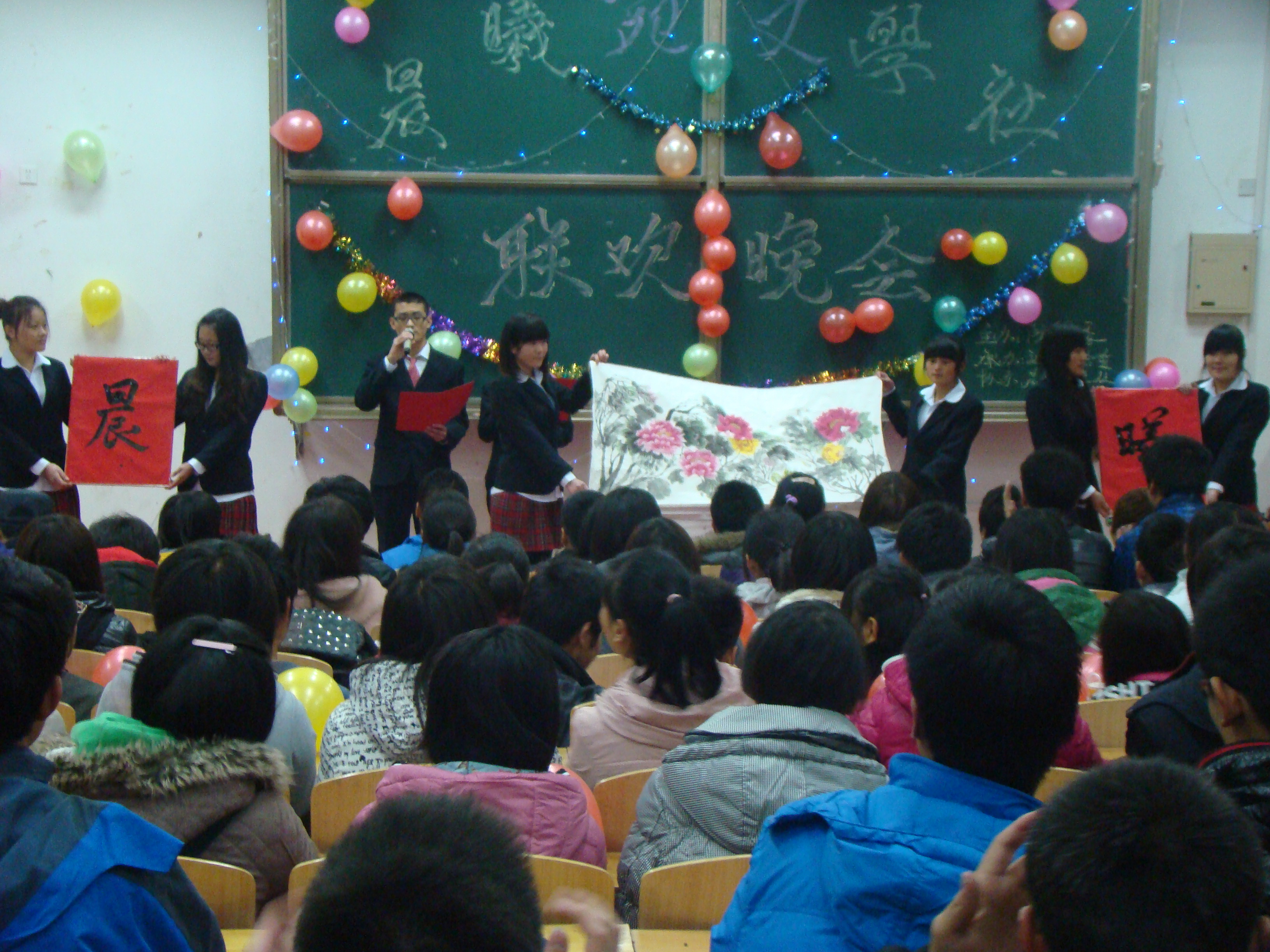 晚6:00,晚会现场华灯璀璨,座无虚席,人山人海。晚会在主持人珠圆玉润的报幕声中拉开了序幕,开场的《晨曦》以优美的声音,动听的曲调抒写出文学社的意义深长。歌曲《勇气》高亢的曲调,就观众内心的激情表露无遗,音乐止息,相声《宇宙牌香烟》颠覆的反串笑点,诙谐的语言色彩,演员的严肃的表演和情节的爆笑形成强烈的对比,令观众捧笑不止,而随后的精彩互动诙谐幽默逗得观众捧腹大笑引爆了全场,将现场气氛一次又一次拉向了高潮。小品《秦始皇选妃》以幽默风趣的表演风格,让观众在欢声笑语中体会到了他们高超的才艺晚会在一首歌曲中圆满落下了帷幕。