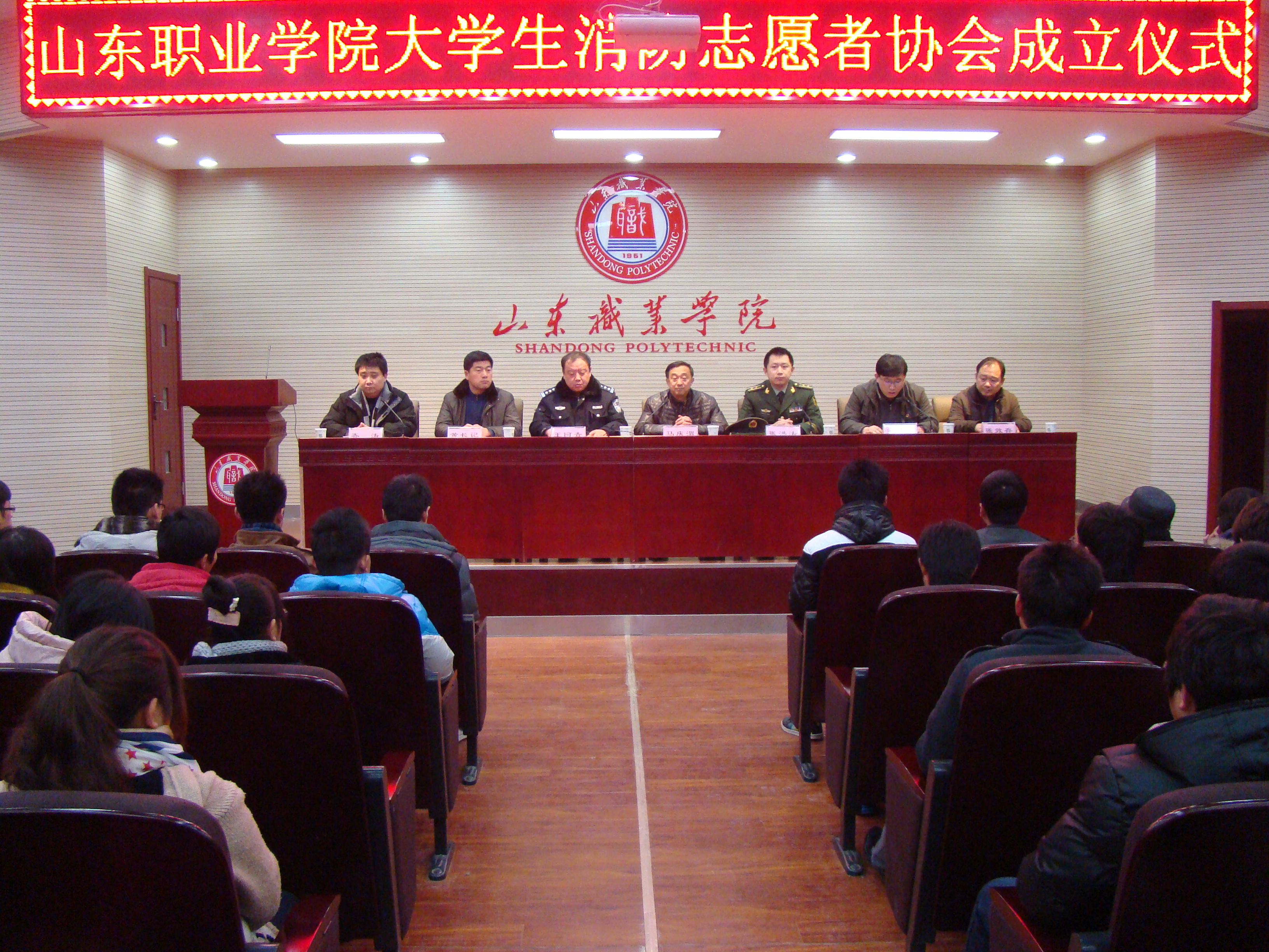 由山职院团委主办,社联协办的山职院消防志愿者协会成立大会于2012年12月21日4:00在报告厅隆重召开,院长马庆渭携王伟,王阿青,张洪涛,黄长记,张效存,齐涛及社联学生干部共同出席本次大会。