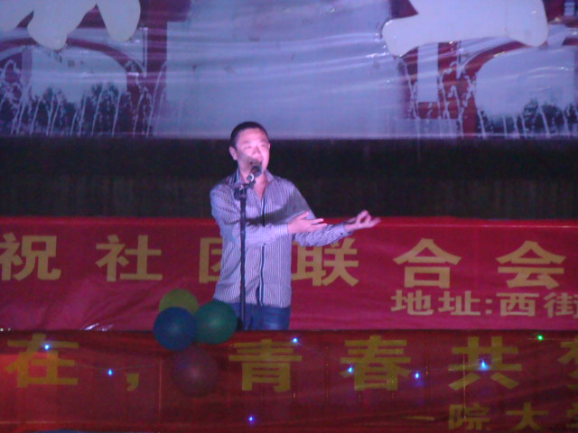 晚上6:30,足球场上已是人山人海,人头攒动。终于,晚7:00,在全场同学们的倒计时中,晚会正式拉开了序幕。晚会以一首架子鼓开场,动感的音乐和演奏声激活了在场所有同学们激扬的艺术细胞,将晚会的气氛推向高潮。接下来的歌曲也为晚会营造了温馨的气氛。晚会节目非常精彩,可谓花样百出。有青春活力的街舞,有幽默搞笑的单口相声,也有精彩的双节棍表演。同学们把表演发挥得淋漓尽致。充分发挥了他们的风采和个性,诠释了“歌舞青春,魅力社联”的主题。现场气氛十分活跃,中间还有互动环节,掌声和欢呼声一波高起一波,晚会持续了两个小时,全体师生度过了一个愉快而美好的夜晚。