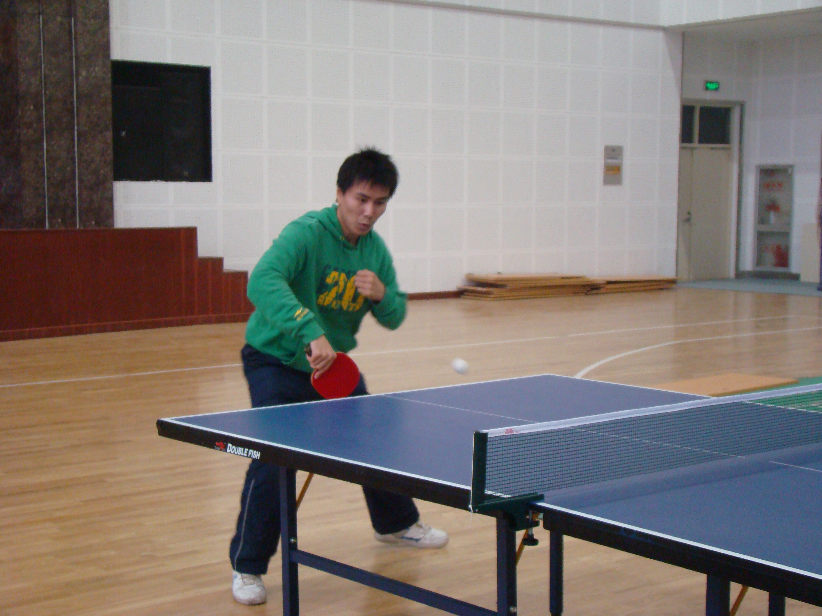 上午七点五十分全场座无缺席,八点决赛开幕式正式举行,各系运动员、裁判长迈着悭锵的步伐斗志昂扬的进入会场。随后裁判代表、选手代表分别上台宣誓,一定会在比赛中坚持“友谊第一,比赛第二”的原则下,奋勇争先,完善自我。今天共有男单、女单、女双、男双4个项目产生进入决赛,全场一五局三胜制。终于,比赛正式开始,只见每位选手都实力不凡,或是凌空吊球,或是冰冷的扣杀,无不扣人心弦,精彩纷呈,不时迎来观众的阵阵叫好声。特别是在男单决赛中。第一场中机械系选手灵活的跑位和凌厉的攻势抢占先机,率先得分,在熟悉打法之后,轨道系的选手也逐渐的找到了应对方法。他用高超的回球迅速追平了比分。比分在大家的叫好声中直线上升。双方势均力敌最后有机械系的一次失误最终兵败于轨道系。下午5点大会顺利落下了帷幕。