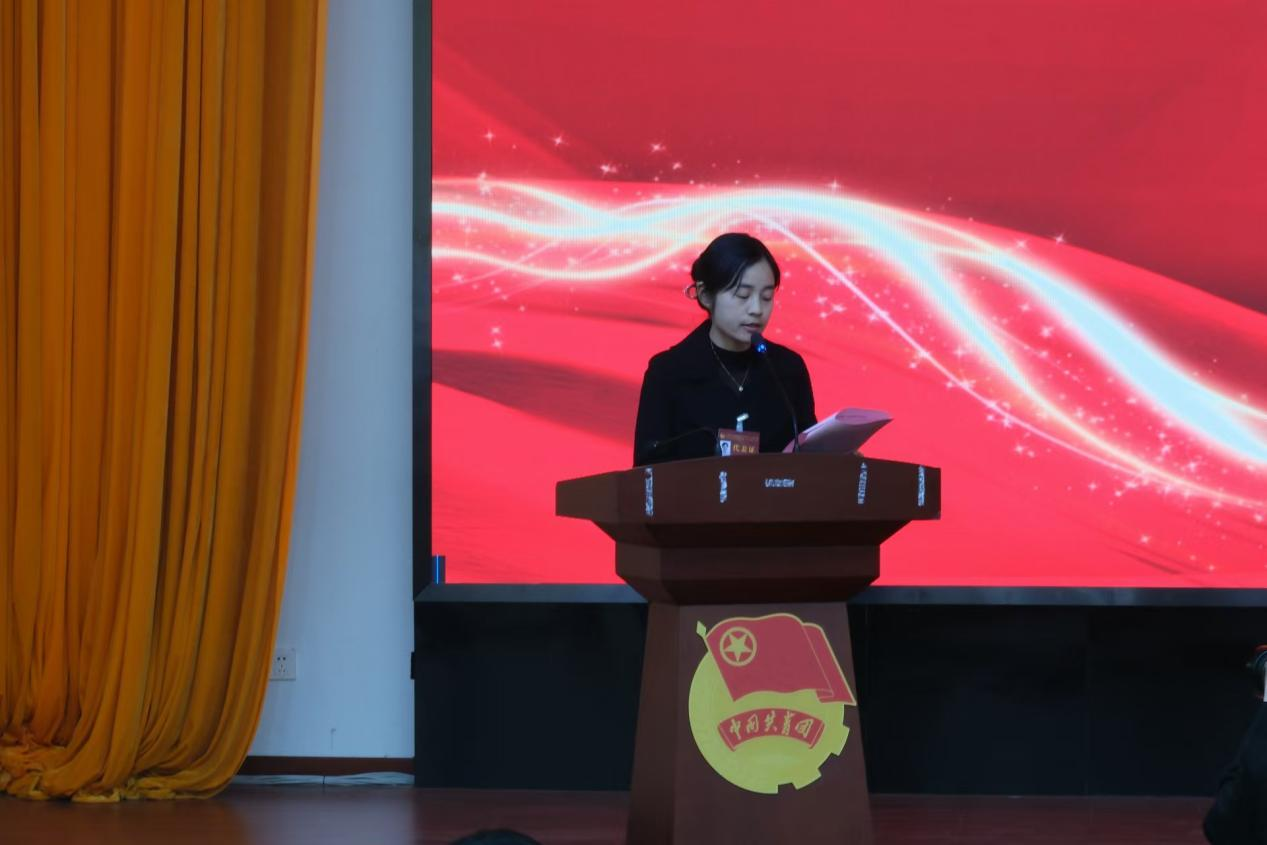 董润喆代表全体青马班学员发言,表示将严格遵守“青马班”的各项规章制度,以不懈的奋进回应时代的呼唤,用炽热的初心书写青春的答卷。