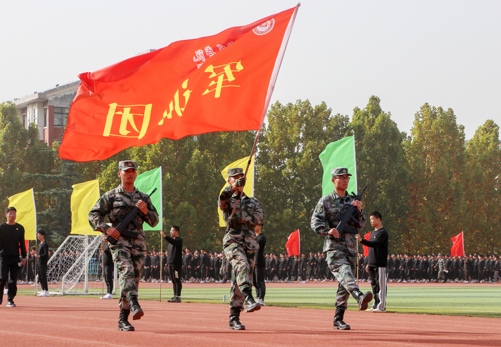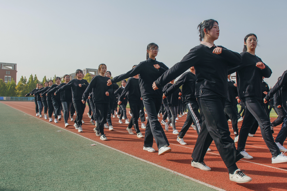 2020级新生在站军姿、整内务、学技能、走队列、唱军歌等丰富多样的军训项目中感受军威、锤炼身心、提升自我,整个军训生活紧张而又充实。