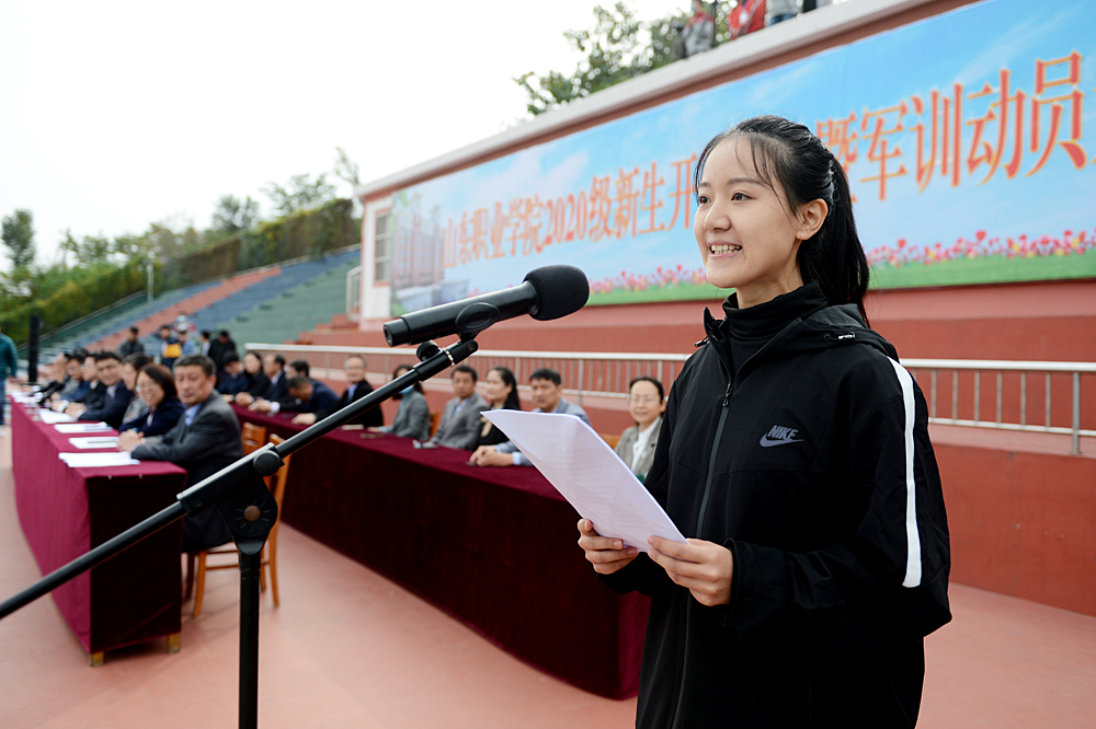 教师代表梁雪、教官代表张鹏程、新生代表侯本婠分别作了发言。