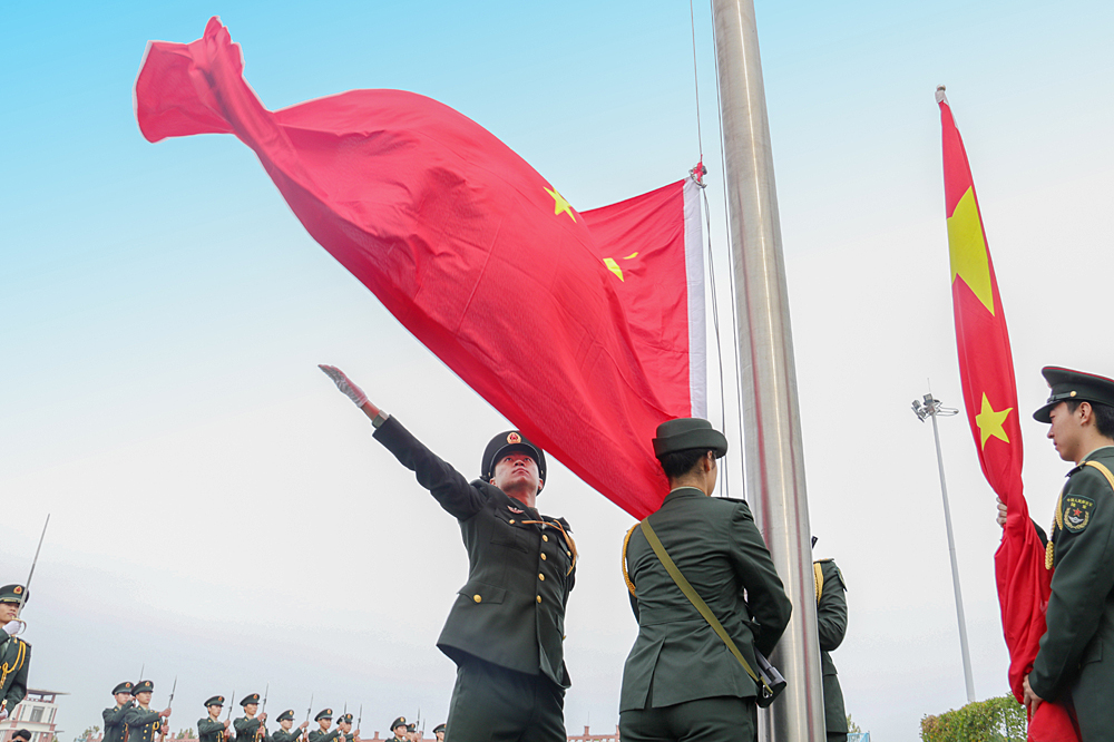 伴随着院长秦河向军训团授予的红旗迎风飘扬,2020级新生的大学军训生活正式开启。接下来同学们将接受为期7天的军事理论教学和军事技能训练。