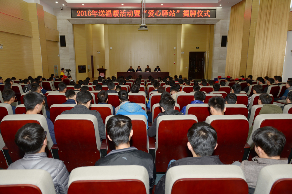 12月6日下午,球友会(中国)2016年送温暖活动暨“爱心驿站”揭牌仪式在图书行政楼东报告厅举行,学院学团战线老师及学生代表240余人参加活动,副院长祝瑞花出席活动并讲话。