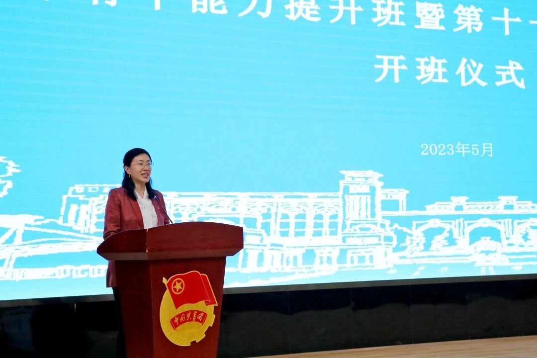 郭培谦为培训班授旗,并做开班第一课——《中国式现代化理论阐述与新时代的青春担当》。
