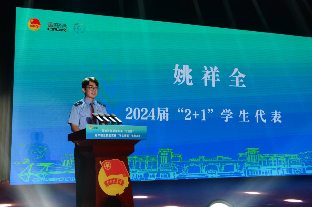 姚祥全作为 2024 届“2+1”学生的代表发言,本次大赛是展现个人卓越才华的上佳平台,积极参与大赛,能够切实锻炼自身的实践能力和团队协作精神,更深刻地领悟和运用所学知识,将其融入到实践操作当中,以此大幅度提高自己的综合素养与竞争实力。