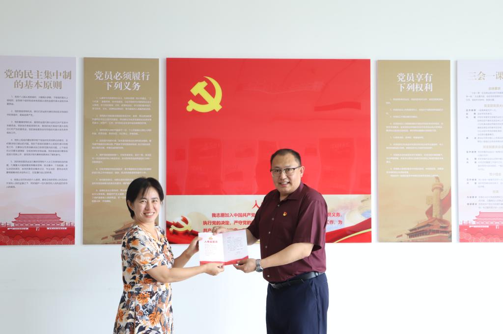 杨硕同志领誓,带领着在场各位党员重温入党誓词。面对鲜红的党旗,大家举起紧握着的右拳,郑重宣誓:“我志愿加入共产党,拥护党的纲领,遵守党的章程……”。庄严的誓言激励着在座的党员不忘初心、牢记使命,更加坚定了为党和人民奋斗终身的信念。