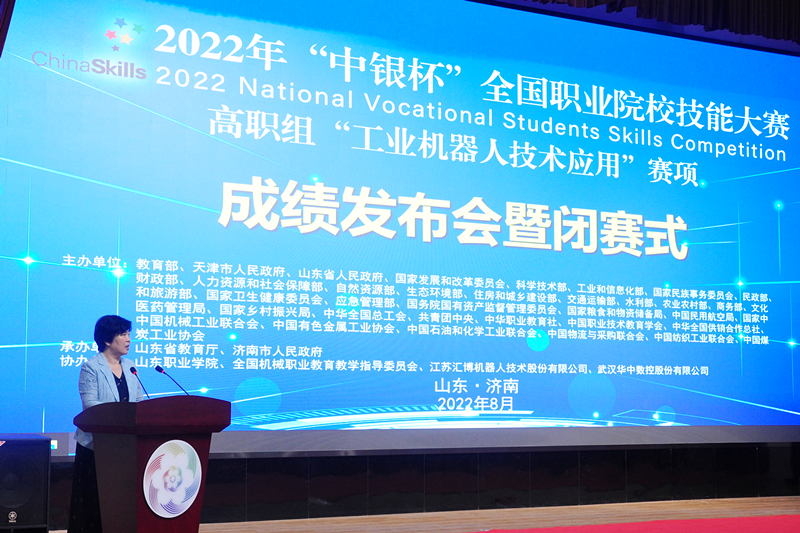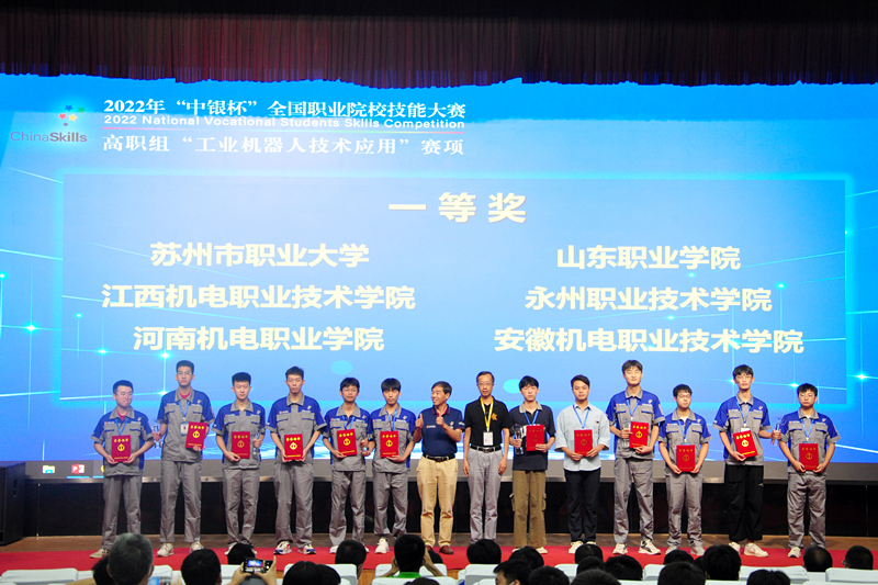 8月26日,2022年“中银杯”全国职业院校技能大赛高职组“工业机器人技术应用”赛项闭赛式在我校图书行政楼西报告厅举行。赛项专家组组长范进桢、赛项裁判长熊越东、赛项监督仲裁组长蒋晓刚,球友会(中国)党委副书记郭培谦、副院长王绍军及监督仲裁组成员、专家组成员、合作企业领导等出席闭赛式。各参赛队领队、指导教师、参赛选手等参加闭赛式。学校副院长祝瑞花主持闭赛式。