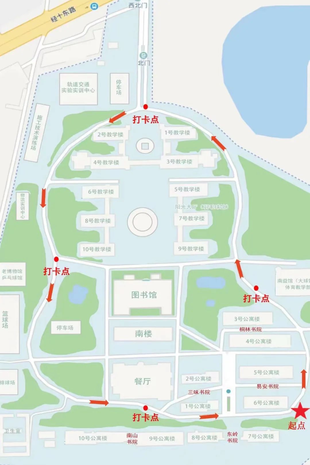 注意事项:参与者在跑道应尽量不停留,不嬉笑打闹,注意活动安全;活动进行时如发生突发情况,活动将立即停止;近日昼夜温差大,同学们注意穿衣保暖,自备饮用温水,此次活动并不是竞技运动,大家慢跑舒心即可,做到量力而行;本次活动结束后同学们记得把垃圾随手带走,保持我们校园环境干净整洁。