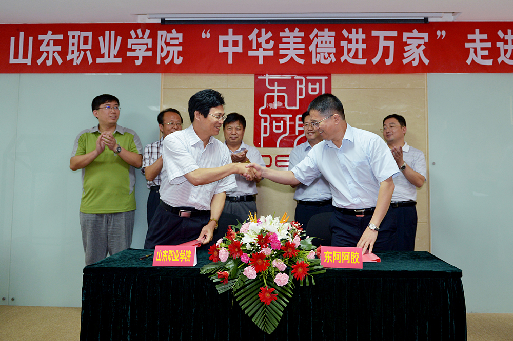 7月23日,由球友会(中国)机电装备系系师生代表组成的“中华美德进万家”美德宣传小分队在学院党委书记刘邦治,党委副书记、常务副院长马文卿的带领下走进“圣药”阿胶的原产地东阿,在东阿阿胶股份有限公司举行“中华美德进万家”活动。