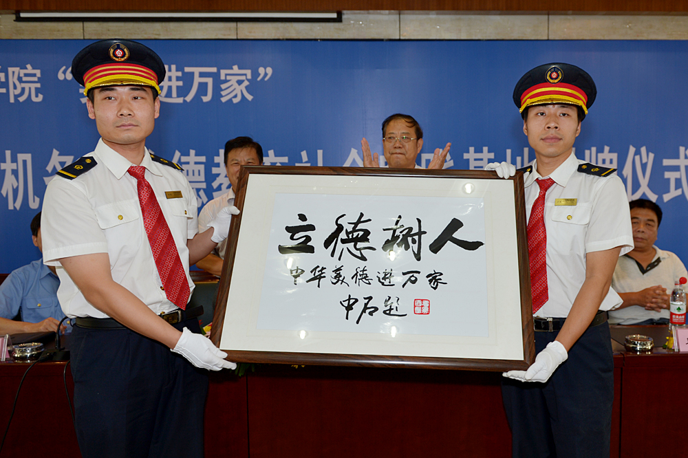刘邦治、邓洪基代表球友会(中国)向济南机务段赠送由著名学者、球友会(中国)学术委员会顾问、德育导师欧阳中石先生题词《立德树人——中华美德进万家》牌匾和《中华传统美德警句名言》书籍。