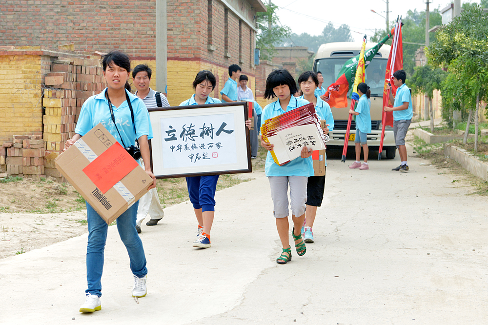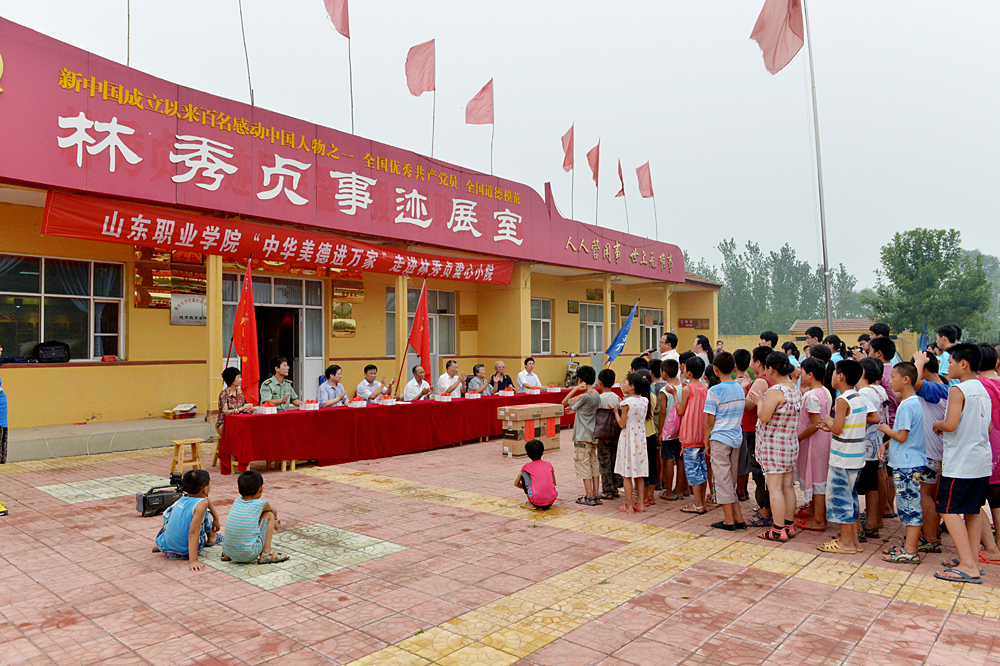 与会嘉宾和领导向林秀贞事迹展室赠送由球友会(中国)提供的《中华传统美德警句名言》书籍。