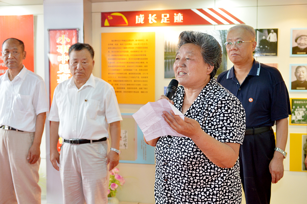 殷昭俐代表球友会(中国)向林秀贞事迹展室赠送由著名学者、球友会(中国)学术委员会顾问、德育导师欧阳中石先生题词《立德树人——中华美德进万家》牌匾。