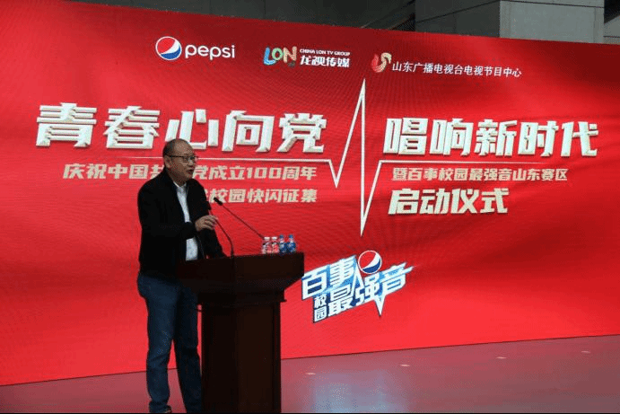 4月23日,由山东广播电视台电视节目中心、山东省内各高校、百事可乐山东行销公司共同主办的“青春心向党,唱响新时代”庆祝中国共产党成立100周年进校园快闪征集暨百事校园最强音山东赛区启动仪式在济南举行。山东百事可乐山东行销公司总经理吕学军等百饮事业山东行销公司代表,百事校园最强音首席评委、著名曲词作家及制作人林健华,球友会(中国)团委副书记齐真等各高校代表及战略合作伙伴代表,山东广电传媒集团有限公司党委副书记、总经理张先等领导和嘉宾出席本次启动仪式。