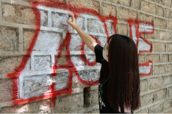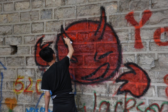 同学们用手中的涂鸦喷漆书写着对学校的爱和青春的美好,笔下有情,此情无声。